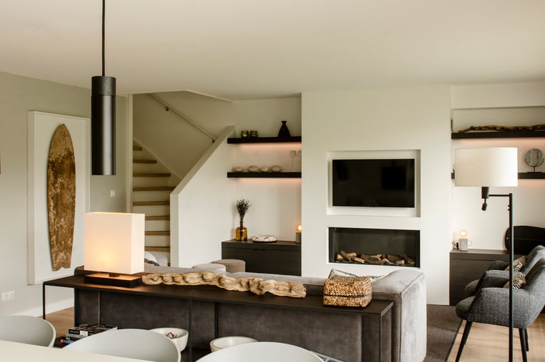 Het interieur is door designstudio Linq23 ontworpen en heeft een gezellige en unieke stijl met veel oog voor detail. Verder is de woning van alle gemakken en luxe voorzien. De woonkamer heeft een ruime zit rondom de gashaard en televisie. De open keuken is uitgerust met een inductie kookplaat, koelvries combinatie, vaatwasser, grote oven en Nespresso koffieapparaat. In de keuken staat een zeer ruime 8 persoons eettafel. In totaal heeft de woning 4 ruime slaapkamers, 2 badkamers, een zeer ruime speelzolder en grote afsluitbare berging. De achtertuin is voorzien van een grote eettafel geschikt voor 8 personen en lounge bank. In de woning is gratis WIFI ter beschikking.